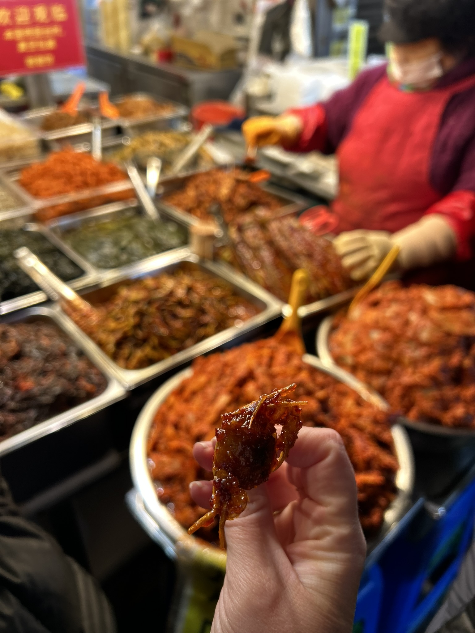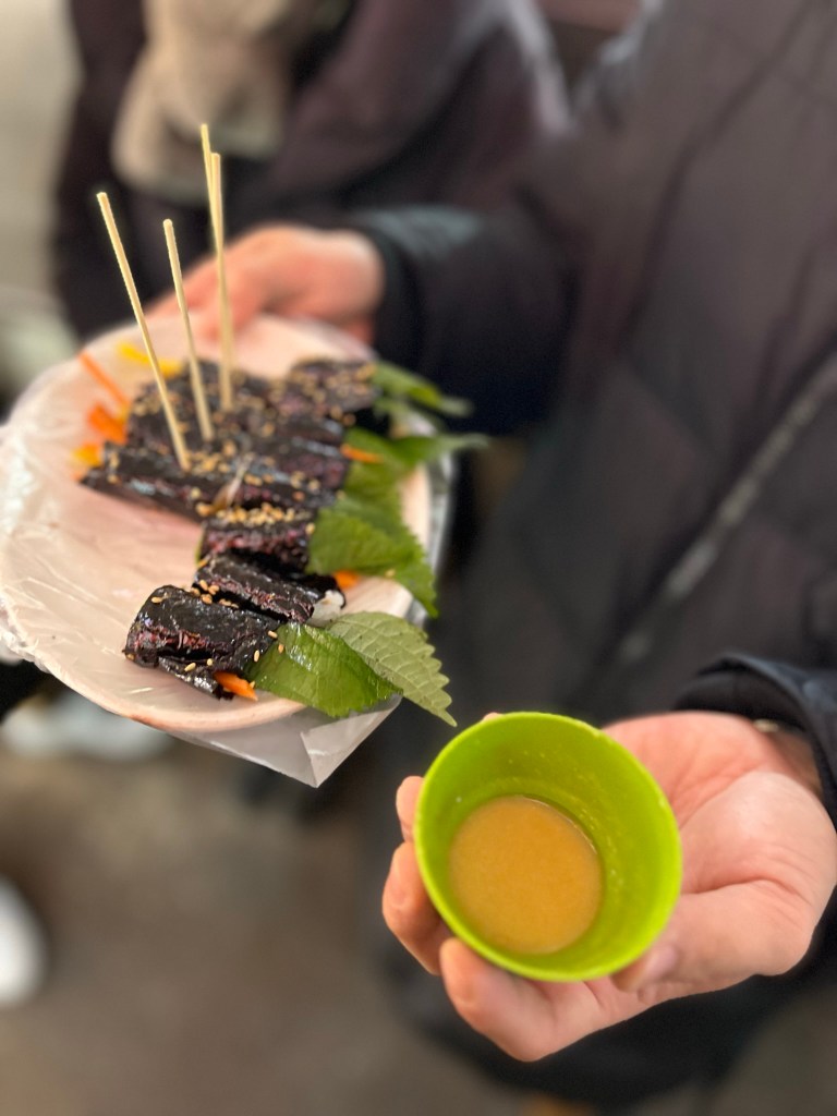 This was one of my highlights when visiting Seoul. It’s a real cultural experience and has the most delicious street food at ridiculously cheap prices. The market is huge and full of locals with a buzzing, lively atmosphere – a great place to people-watch whilst you sample all of the wonderful (and some slightly weird) Korean snacks. I would definitely recommend the following;