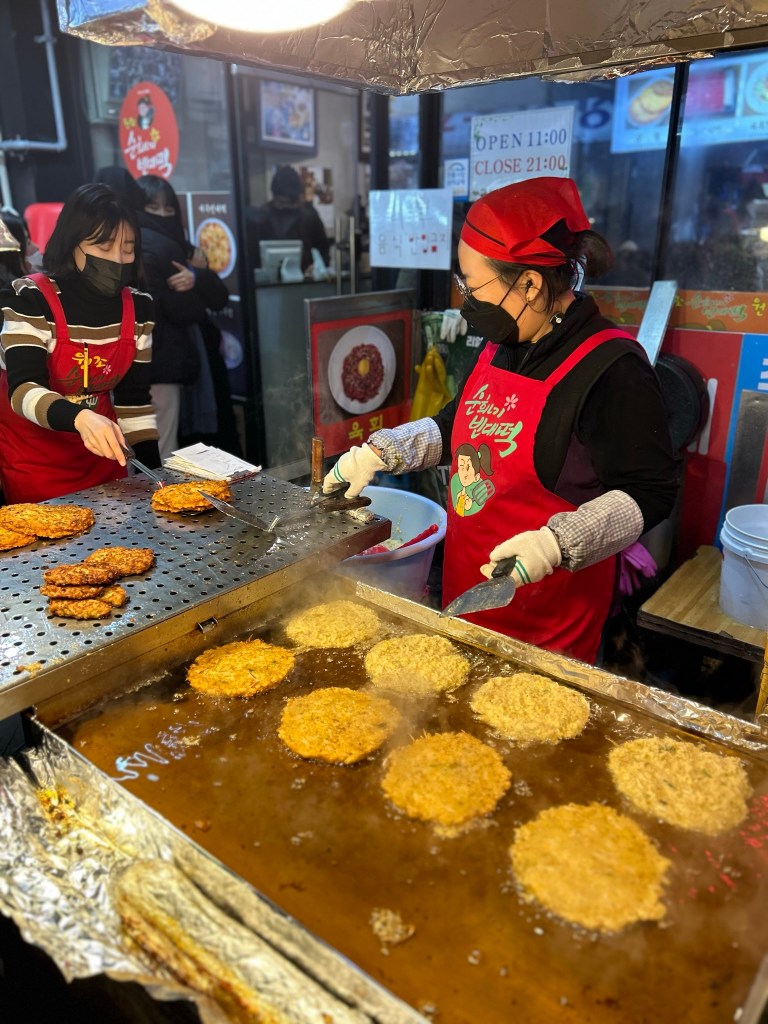 Bindae-tteok – A crispy, savoury pancake made from mung bean. Similar to a hashbrown texture, served hot and amazing dipped in soy sauce or vinegar.